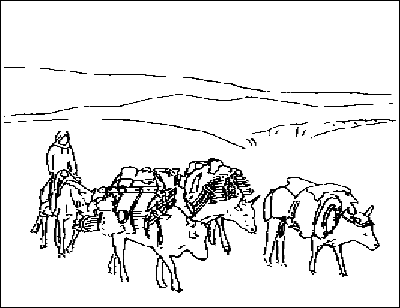 Figure 1. Oxen carrying Kirgiz yurt and furnishings (after Murray, 1936)